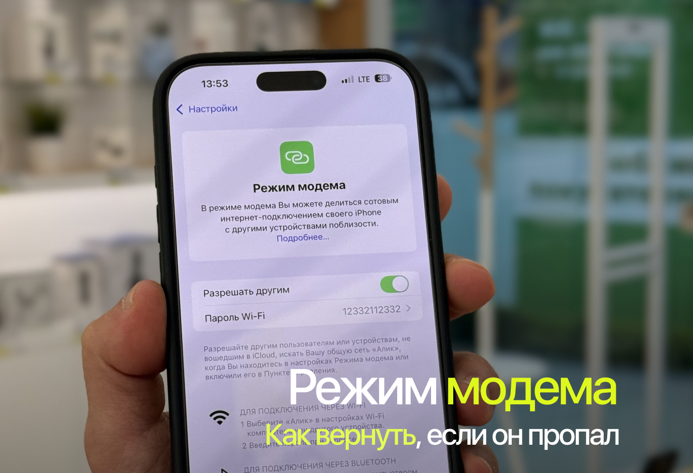 Если вы обновили ПО на своем айфоне или обновили сам телефон на новый, вы наверняка заметите, что в настройках пропал пункт "Режим модема". Он позволяет раздавать интернет и подключаться к нему с любого устройства, имеющего wi-fi модуль. Давайте его вернем и активируем всего за 3 минуты:
